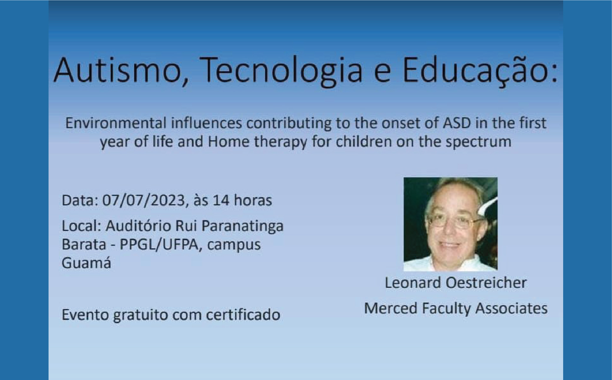No dia 07 de julho, às 14h, o Auditório Ruy Paranatinga Barata (PPGL/UFPA) recebe a importante palestra "Autismo, Tecnologia e Educação", com o Dr. Leonard Oestreicher (Merced Faculty Associates).